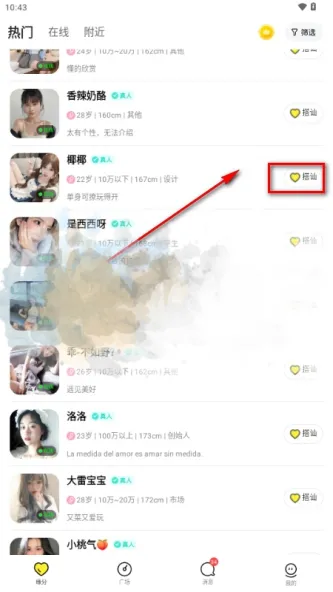 1、在首页选择一个我们感兴趣的交友对象;