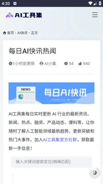 AI-工具箱MS软件官网版集成图像、文本、视频及音频处理等多维智能技术。无需注册即可免费使用,覆盖创意构思至办公协作全场景。一键完成文案生成、图片美化、视频剪辑与语音转写,操作简便高效。内置百度、Google等主流搜索引擎,可灵活切换。界面采用分类导航,常用功能快速触达。系统持续更新前沿AI工具,保持资源库活力。移动端使用者能集中管理各类智能服务,满足多元创作与辅助需求,打造高效一站式工作流,提升日常生产力与内容制作效率。