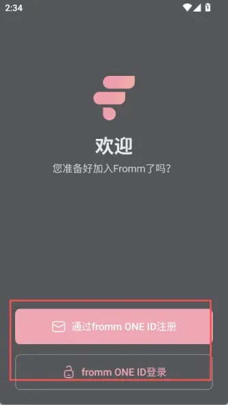 1、打开fromm软件,有账号就点登录,没有就点击注册;
