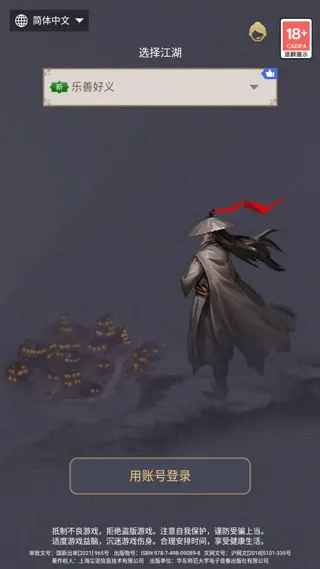 1、打开这就是江湖手游,选择游戏服务器,点击账号登录;